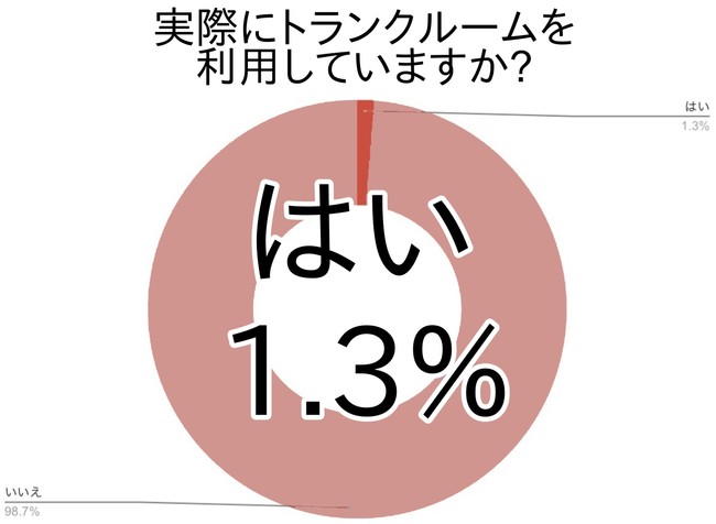 トランクルームを実際に利用した人はわずか1.3%でした。気になっていてもサービスを詳しく知らず正確なイメージがわかなかったり、コストが気になって実際に利用まではしていないという人が非常に多いといえます。しかし、実際にトランクルームを利用して生活スペースに余裕をつくり、便利に活用している方がいらっしゃいました。