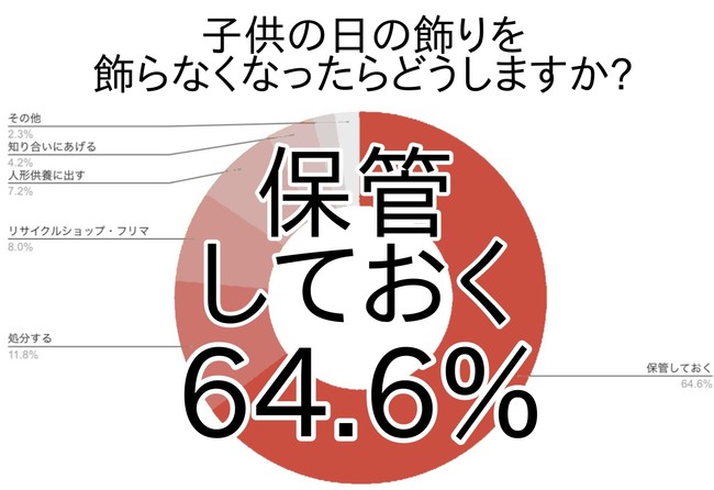 記念に保管しておくと答えた方が64.6%を占め第1位でした。つまり、思い出として今後も保管しておき、必要に応じて子供の世代に譲っていくと考えている方が多いようです。