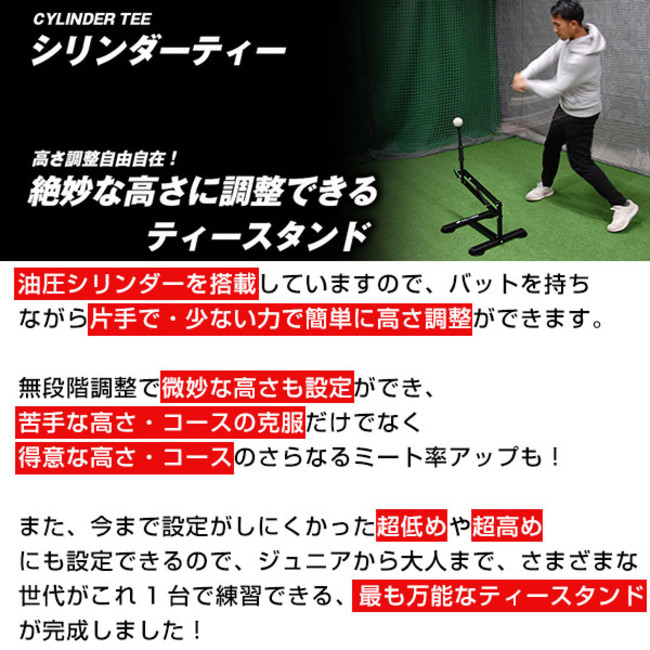商品名:シリンダーティー 硬式・軟式・ソフトボール対応 高さ約45〜108cm ジュニア〜大人まで 油圧式