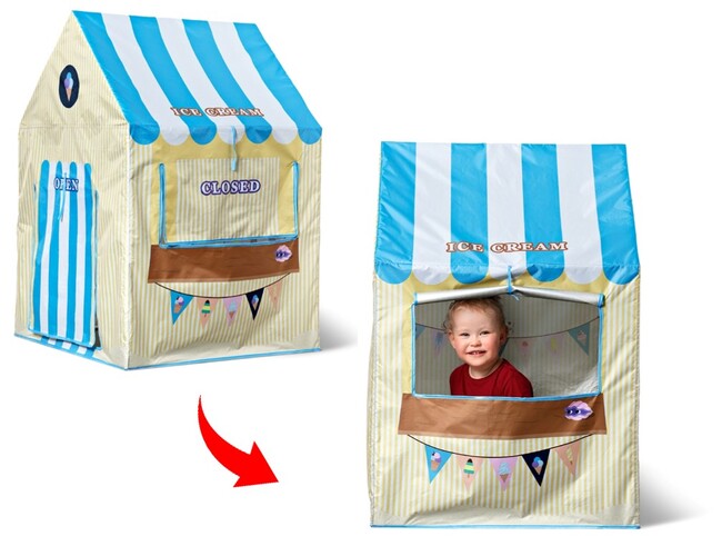 キッズに大人気テント!これ1つあれば、アイスクリーム屋さんごっこが楽しめちゃう!窓を閉めると「CLOSED」になる工夫も。