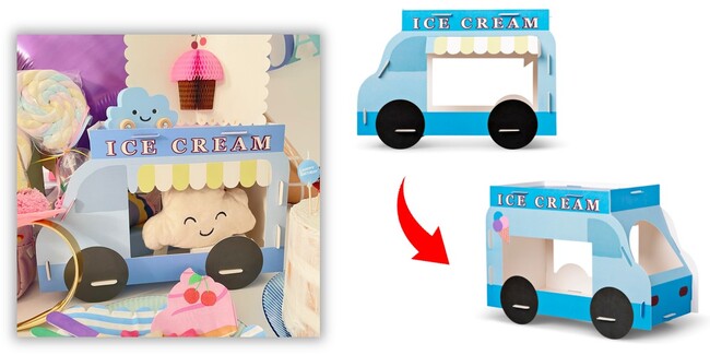 アイスクリームカーがモチーフのデコレーションはパーティーのワンポイントに!立体になっているので、お菓子やカップアイス、クラッカーなどのパーティーアイテムを盛りつけたり、キッズが大好きなぬいぐるみなどを乗せてもかわいい♥