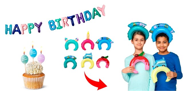 大人気バースデーガーランドに新色登場!バルーンのキャンドルをケーキに刺して、お揃いのバルーンカチューシャを装着したら、お祝いスタート!