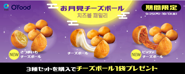 O'Food公式ショッピングサイトにて、新商品のピッツァチーズボール、さつまいもチーズボールの発売を記念した『お月見チーズボールキャンペーン』を10月13日まで開催中!