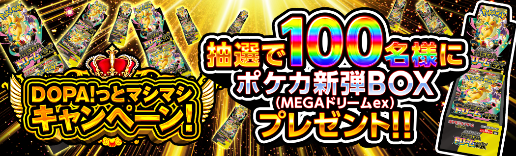 キャンペーン期間中、3,000円以上ポイントをご購入の方の中から抽選で100名様に「ポケモンカ-ド新弾BOX(MEGAドリームex)」をプレゼントいたします。