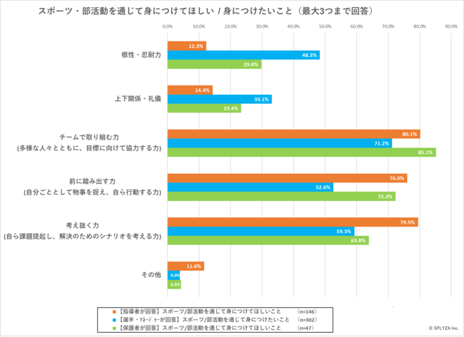 ですが今回の調査結果では、社会に出てから必要とされる「主体性」や「考える力」をスポーツ・部活動を通じて育むことができる、という考えがスポーツ関係者の間に広く認識されていることが明らかになりました。