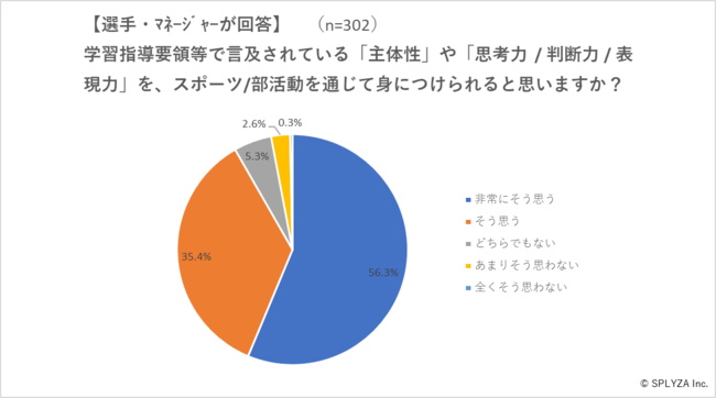 アンケート調査の結果、全体の87.5%の方が、“スポーツ/部活動を通じて「主体性」や「考える力」を身につけられると思う”と回答しました。