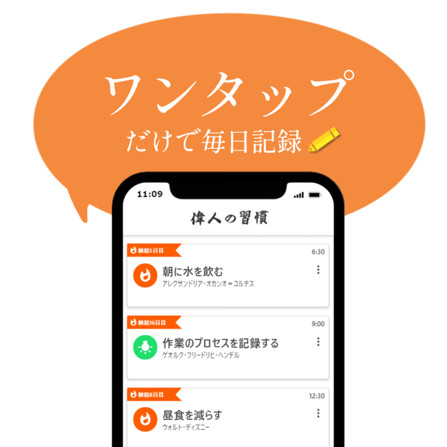 【利用者300人突破!】天才達の”習慣”をワンタップで日常に取り込める無料アプリ「偉人の習慣」好評配信中!