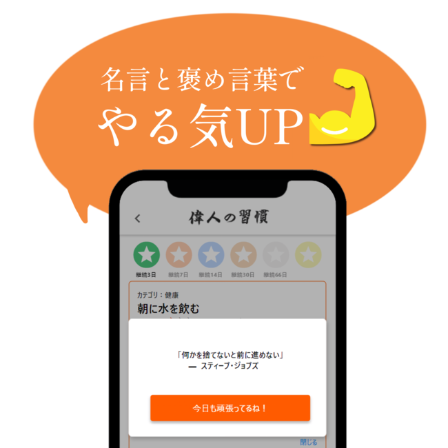 アプリを毎日使って、頑張る自分を褒めてあげましょう。