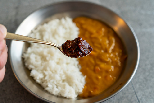 まず、スプーン1杯程度の分量で、カレーとAOSを2:1の比率で混ぜ合わせ、味見をして好みの量を決めてください。