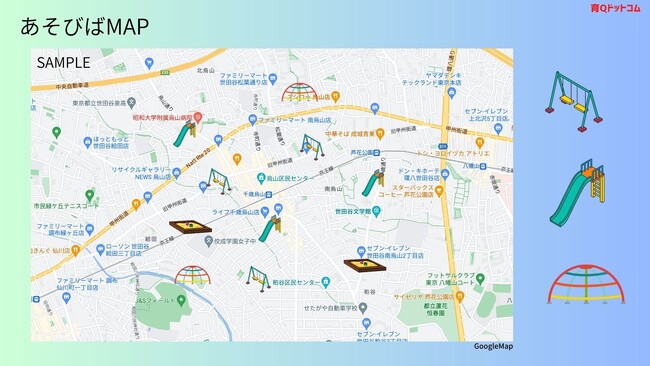 こどもを一緒に遊びに行ける場所をマッピングします。
