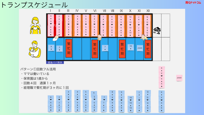 トランプを活用し、育休取得のスケジュールをシミュレーションします。