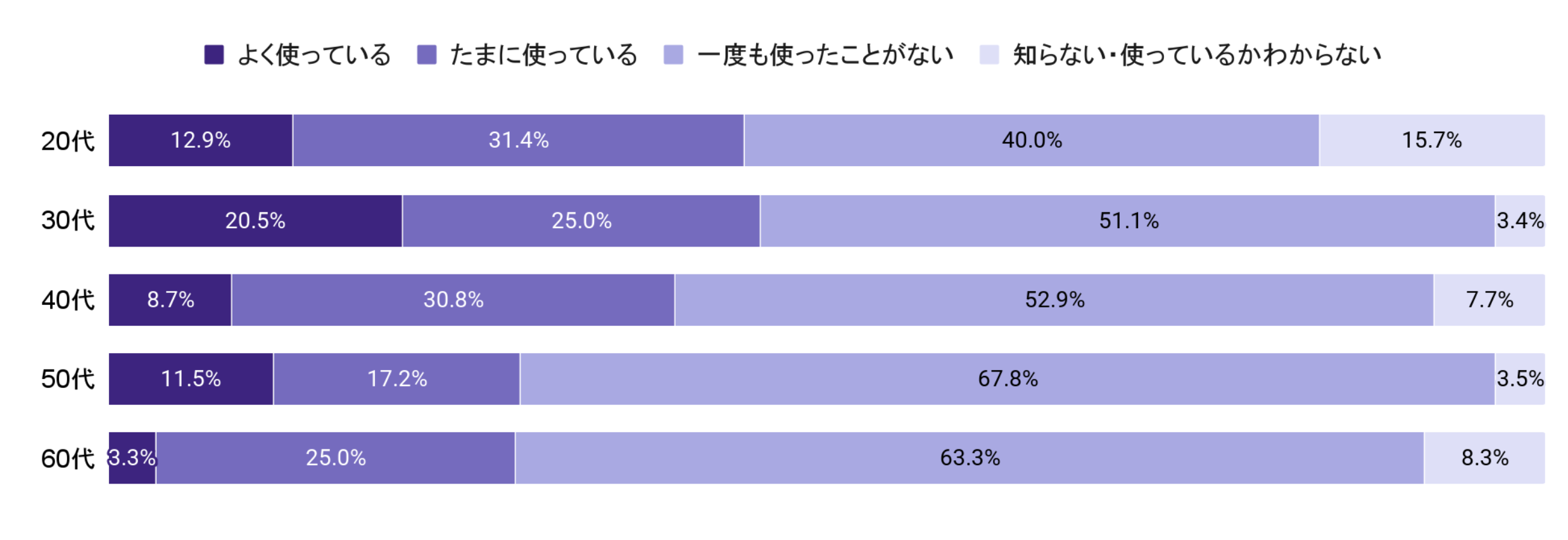 また、20代では「知らない・使っているかわからない」と回答した割合が15.7%と、他の年代より高い傾向にありました。