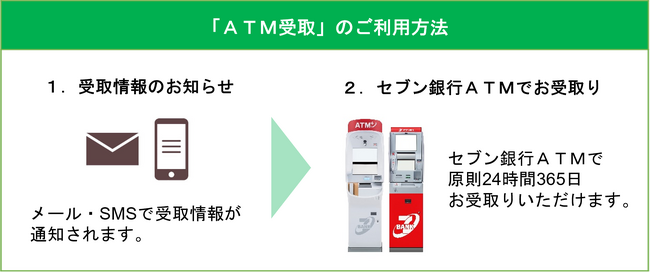 正式名称 : ATM受取 開発・運営 : 株式会社セブン・ペイメントサービス サービス地域 : 日本国内 リリース日 : 2018年5月2日 URL : https://www.7ps.jp/atm/