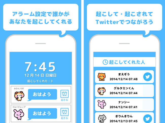 起こした相手や起こしてくれた相手のTwitterアカウントへ御礼のツイートやフォローがそのままアプリ内で可能です。いろんな人を起こしてあげることで、Twitterのフォロワー数が増えていくかもしれません。