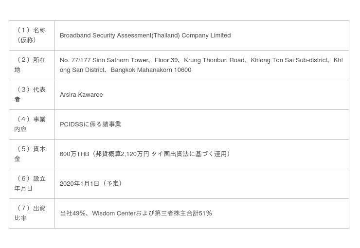 今回、当社のアジアにおける拠点設営、事業基盤拡大という方針と、Wisdom CenterのQSA認証という方針、利害関係が一致したことにより、両社は2020年1月にタイ王国バンコクにて合弁会社を設立することで合意いたしました。