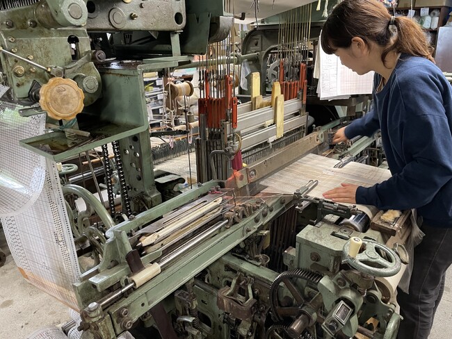 創業120年の歴史を誇り、伝統工芸品『多摩織』の技術を継承する東京都・八王子市の澤井織物工場が織りをしています。