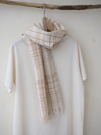 ・品名:手つむぎ糸の和綿マフラー【チェック】【きなり×茶】