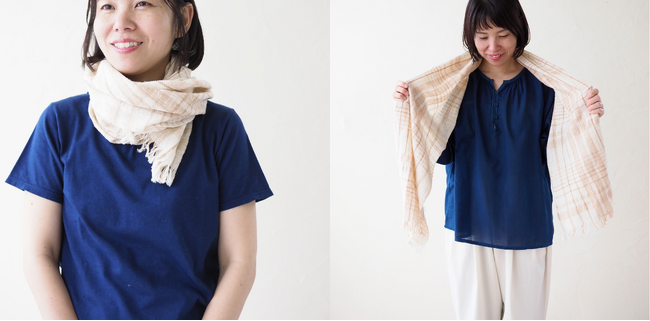 手つむぎ糸の和綿マフラーで、日本伝統産業の未来を温める!