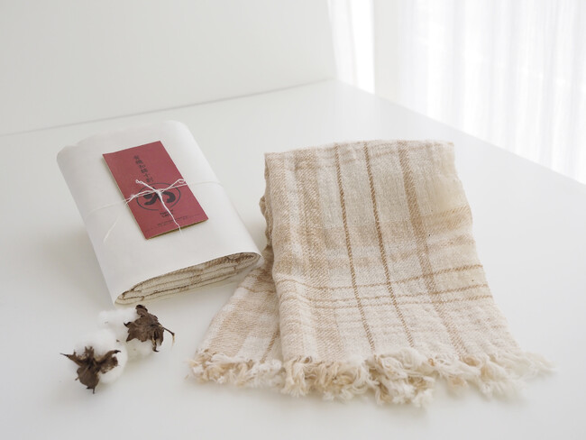 【自給率0(ゼロ)の日本の綿文化を変える!】明治に途絶えた「和綿」と希少な「旧式シャトル織機」で作るサステナブルな未来のための国産オーガニック「手つむぎ糸の和綿マフラー」が9/1(金)新発売!