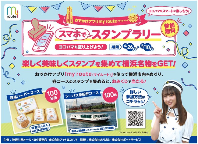 マルチモーダルモビリティサービス『my route(マイルート)※』を横浜で展開する株式会社アットヨコハマ(本社:横浜市神奈川区栄町7-1/代表取締役 上野 健彦、宮原 漢二)は、ゴールデンウィーク休暇に合わせて横浜を盛り上げる企画を実施します。こちらは、おでかけアプリ『my route』を使って横浜市内をめぐり、対象店舗(30〜40店を予定)でお買い物をしてスタンプを獲得すると、横浜ならではの賞品が200名様に当たる、おみくじ抽選プレゼントとなります。