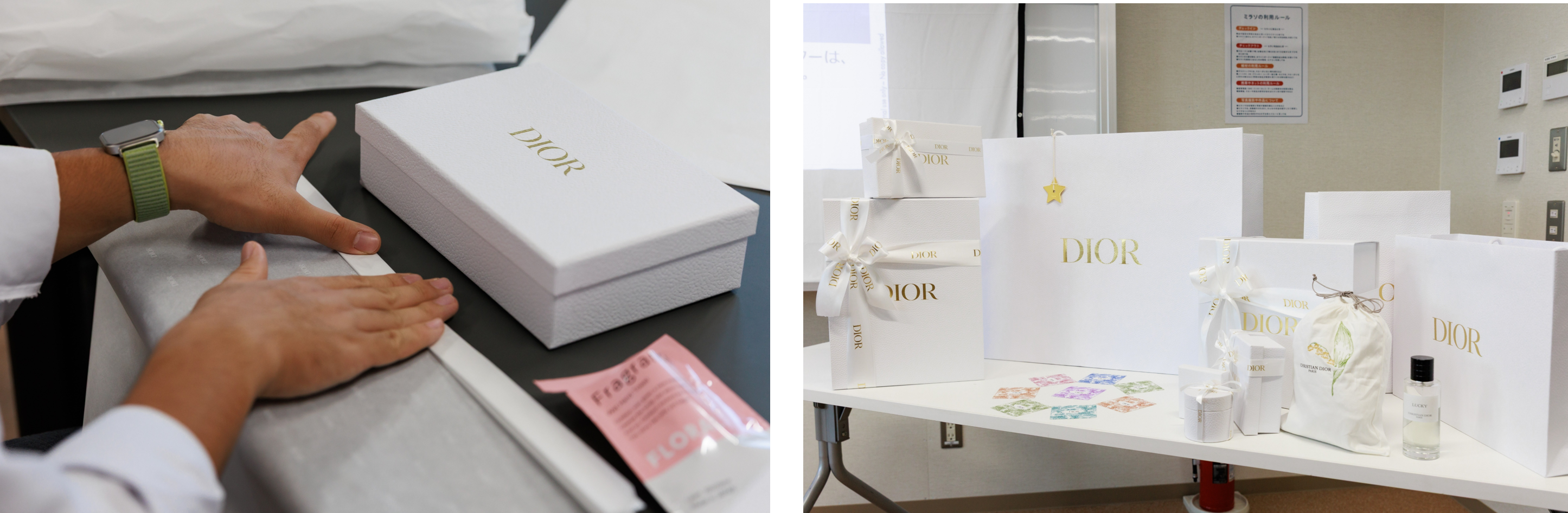 - ディオール: アート オブ ギフティング体験。ディオールのサヴォアフェールを感じるギフトの芸術を学び、創設者クリスチャン・ディオールの想いを探究。フレンチエレガンスの世界を体験しながら、大切な方への想いをメッセージカードに込めてギフトボックスを完成させました。