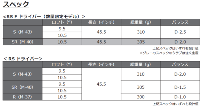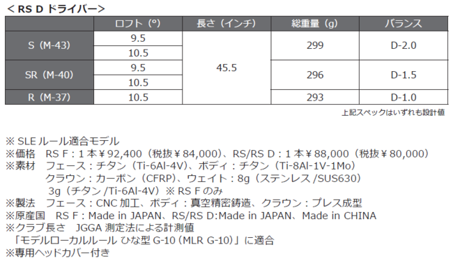 「RS JUST」ドライバーは、ゴルファーが求める弾道、スイング、イメージに合わせて「JUST FIT(最適)」なドライバーが選べるよう、左へのミスを軽減し叩けて強弾道の「RS F(エフ)DRIVER」、ストレートフェースで高い操作性と強弾道の「RS DRIVER」、つかまりが良くハイドローで攻められる高弾道の「RS D(ディー)DRIVER」の3モデルをラインアップします。また、最適重心設計「JUSTコンセプト」によるバックスピン量の最適化で、ヘッドスピードの速いゴルファーの最大飛距離を引き出します。