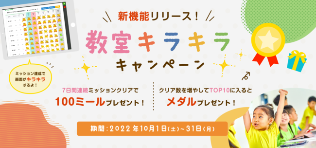 クラスのお友達と7日間キラキラを目指しましょう。TOP10クラスのメンバー全員にメダルをプレゼントします!
