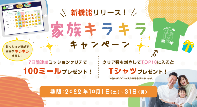 これを記念して2022年10月限定☆家族キラキラ☆キャンペーンを開催!頑張った家族には、親子お揃いのTシャツをプレゼントします!
