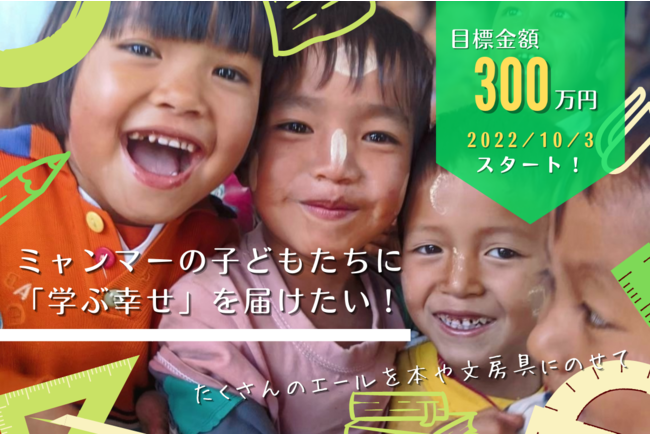 特定非営利活動法人地球市民の会(所在地:佐賀県佐賀市、代表:山口 久臣、以下:NPO法人地球市民の会)は、「ミャンマーの子どもたちに学ぶ幸せを届けるための教育支援」を目的に、2022年10月3日(月)〜2022年11月11日(金)の期間にクラウドファンディングを実施いたします。目標金額は300万円で、いただいたご寄付は文房具など学用品、奨学金、ミニライブラリー用の本代等の資金として使用いたします。