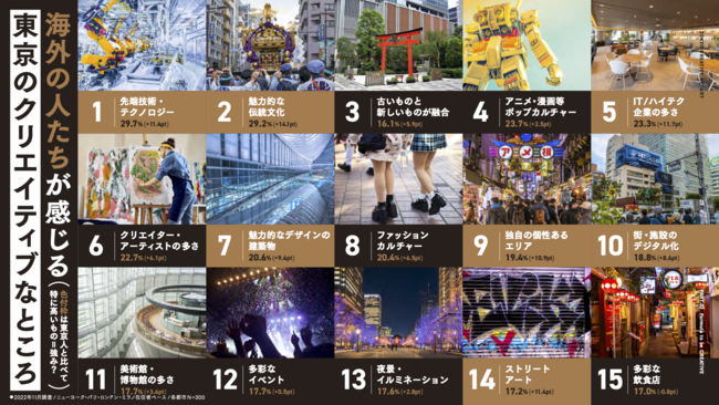 しかし、東京に暮らす人や住む人はそう思っておらず、海外と国内でのクリエイティビティに対する評価のギャップが非常に大きいことも明らかになりました。