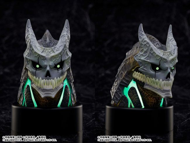 さらに、高い再現性と、超リアルな造形によって造られた「怪獣8号 ハーフマスク」、スイッチを入れることで瞳と首筋が光る、「怪獣8号 発光ヘッドフィギュア」などが、順次展開予定。
