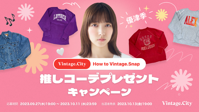 ヴィンテージ・ファッション・アプリ「Vintage.City(ヴィンテージ・シティ)」(会社:NAVER J.Hub Corporation(本社:東京都品川区)、運営代行:株式会社MXN JAPAN(本社:東京都品川区))は、2023年9月27日(水)19:00より古着好きファッションクリエイターの優津季(ゆづき)さんと共に「推しコーデプレゼントキャンペーン ~How to Vintage.snap~第2弾」を実施します。