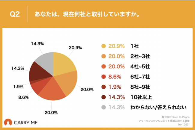 「Q2.あなたは、現在何社と取引していますか。」(n=105)と質問したところ、「1社」が20.9%、「2社~3社」が20.0%という回答となりました。