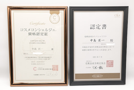 知識面では、文部科学省が後援する日本化粧品検定を1~3級まですべて取得。コスメコンシェルジュ、化粧品成分スペシャリストに認定されました。