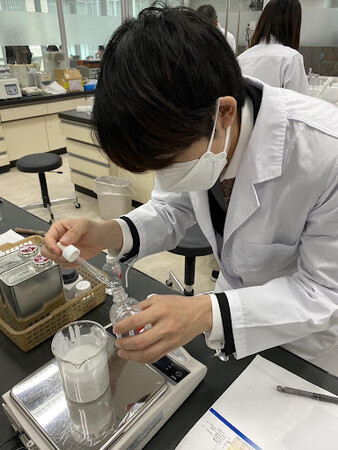 実験では、ときに原料を風呂に溶かして全身の肌で刺激を確かめ、髪のキューティクルが壊れチリチリになったりもしました。