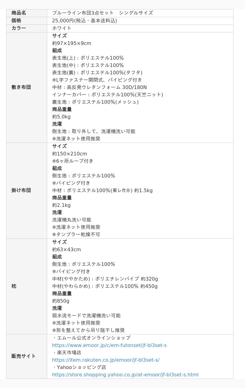 エムールのブルーライン布団3点セット