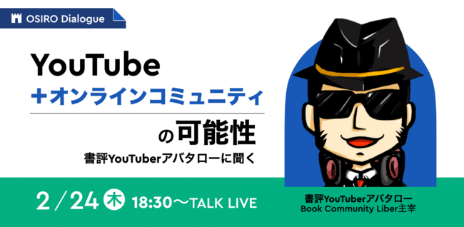 オシロ株式会社 (URL: http://osiro.it 本社: 東京都渋谷区、代表取締役社長 杉山博一) は、 読書コミュニティ「Book Community Liber」主宰で書評YouTuberアバタローさんをゲストに迎え、オンラインコミュニティの活動に迫る対談イベントを開催いたします。
