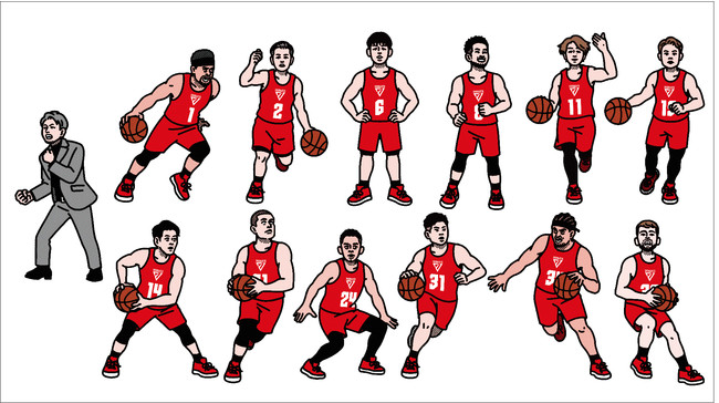 人気イラストレーター・doccoが12選手に加えてヘッドコーチをイラスト化。今まで見たことがない、新しい「千葉ジェッツ」の姿が誕生しました!
