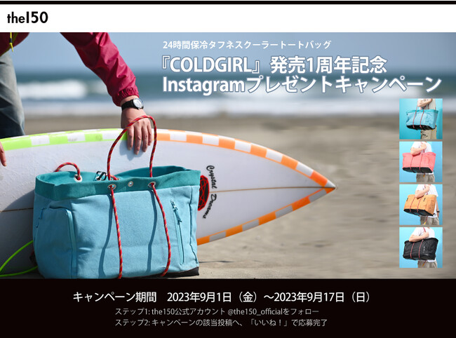 株式会社the150は、9月1日(金)〜9月17日(日)まで、「COLDGIRL」の発売1周年記念イベントとして、公式Instagramにてプレゼントキャンペーンを開催。