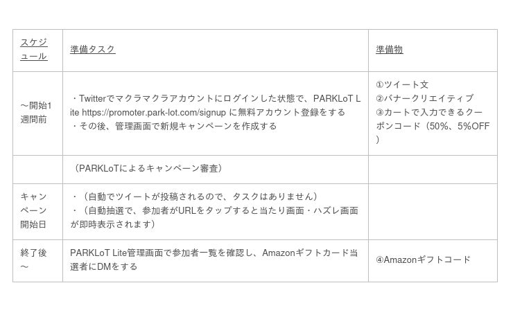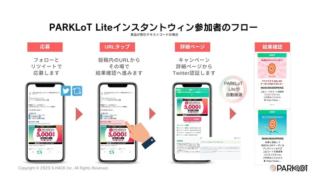 貴社のTwitterアカウントにログインした状態で、https://promoter.park-lot.com/signup から、無料インスタントウィンPARKLoT Liteをお試しください。
