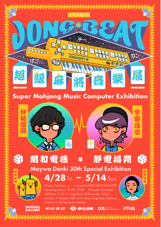 「明和電機」と、SOMSOC GALLERY所属のアーティスト兼ミュージシャン、静電場朔によって共同発明された麻雀型電子楽器「Jongbeat」と、同時に制作されたミュージックビデオ『教えて!超弩級電脳麻雀』並びに『四角宇宙』が、原宿のSOMSOC GALLERYで全世界先行公開・展示予定です。