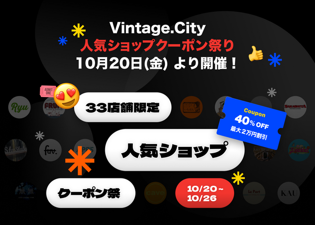 Vintage.City、最大20,000円割引で購入できる “人気ショップクーポン祭り”を10月20日(金)より開催!