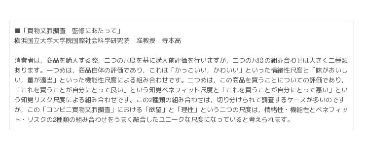 なお本調査は、消費者行動とマーケティングコミュニケーションに関する実証分析を専門領域とする、横浜国立大学大学院国際社会科学研究院・寺本高准教授の助言と監修を受けて開発しております。
