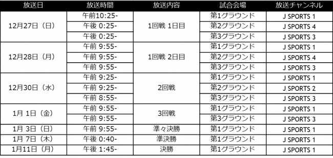 ◇12月27日(日)J SPORTS 1では、午後0:30試合開始の第1試合の前に、午前10:30から始まる「開会式」と、午前11:20試合開始予定の「U-18花園女子15人制」をそれぞれお届けいたします。