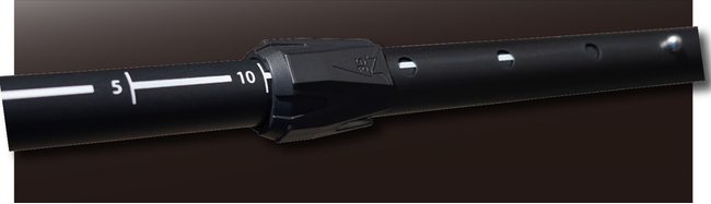 ポール部分の差込口、伸縮するスライド側のポールもオールブラックアルマイトに。