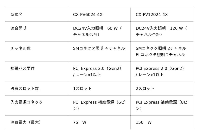 ※2 産業用PCに組み込んで、マシンビジョン用照明を制御できるPCI Express規格に対応した拡張ボード型の照明コントローラー。