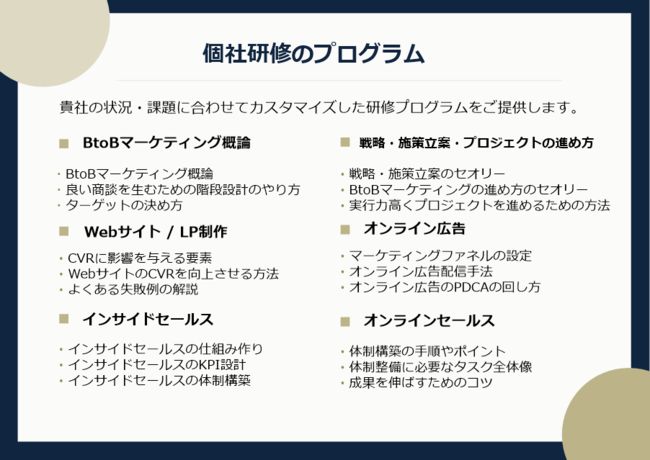 先の見えないこのような時代だからこそ、企業にとってはwith/afterコロナ時代に適応したマーケティング戦略が必要であり、社員にとっては、ビジネスパーソンとしての視野や知識を習得することで基礎的能力を鍛え、1日でも早く即戦力となれる社員育成が必要です。