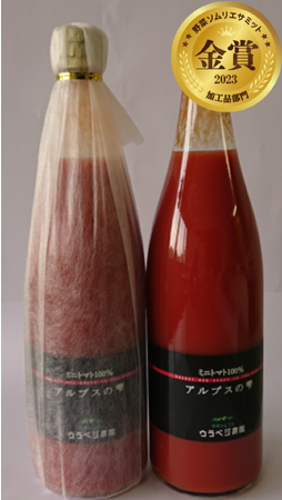 こんにちは!ウラベジ農園です。私たちの農園は長野県南部にあります。中央アルプスのミネラルたっぷりの雪融け天然水、全国有数の日照時間、山々に囲まれた盆地ならではの寒暖差。おいしさのひみつは、この水、光、空気です。自然の恵みが凝縮された完熟ミニトマトだけを贅沢に搾り、こだわりのジュースに仕上げました。ぜひご賞味ください。