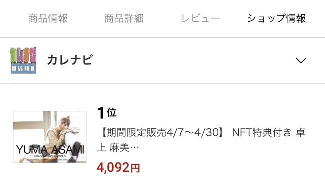 ※2023年4月7日(金)より、(麻美ゆまさんNFTカレンダー完売プロジェクト)が始動され、カレナビYahoo!とカレナビ楽天の2つのECショップにて販売を行い、昨日4月26日(水)夜に完売。