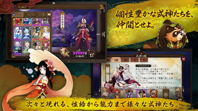 日本では古くから妖怪にまつわる物語が伝えられており、様々な解釈や結末が存在しております。「陰陽師」に登場する式神も同様、それぞれの物語や特徴があり、「三尾の狐」は妖美で狡猾、雨女は情け深いなど愛や憎しみなど入り混じった背景が悲しくも魅了される設定となっております。様々な特徴をもつ式神の中からお気に入りを見つけ出し、一緒に平安時代を巡ってみてはいかがでしょうか。